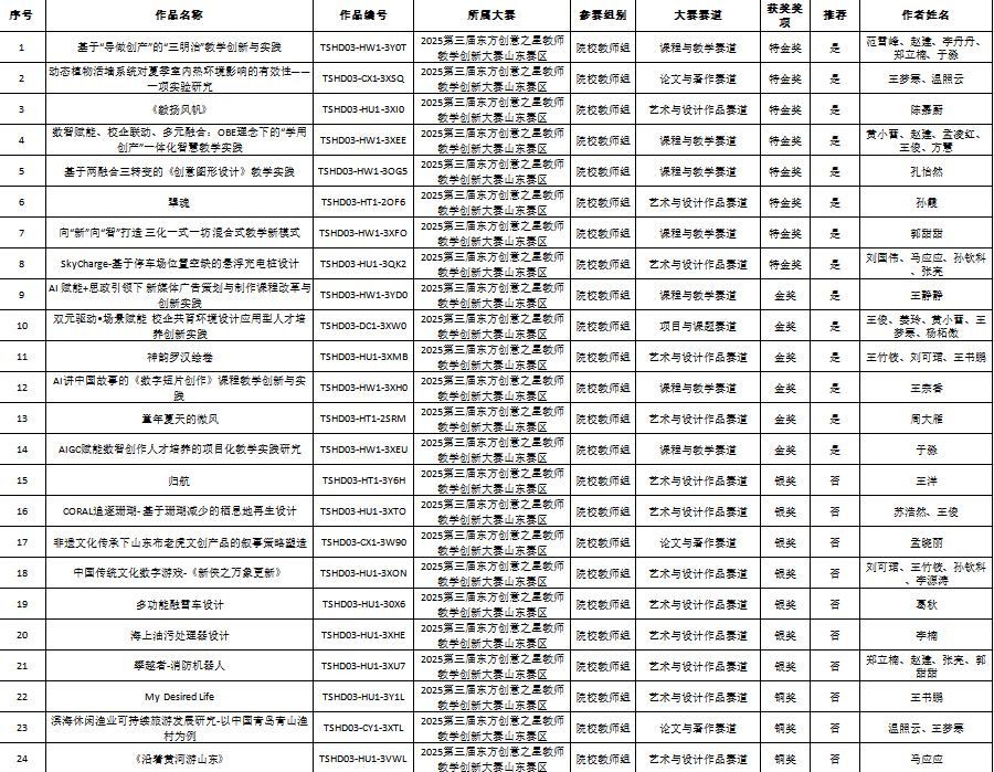 近日,2025东方创意之星教师教学创新大赛圆满收官,艺术传媒学院教师团队不负众望,在全国高校激烈角逐中交出亮眼答卷:共斩获特金奖8人、金奖6人、银奖4人、铜奖3人,其中特金奖获推参加全国总决赛,冲刺国赛评审,彰显我院教学创新的强劲实力。学院始终将教师教学竞赛作为推动教学质量提升的核心抓手,深度践行 “以赛赋能教学” 的发展理念。不仅积极组织和支持各类教学竞赛的开展,更着力推动竞赛成果向日常教学场景转化,致力于将竞赛中涌现的优秀教学设计、...